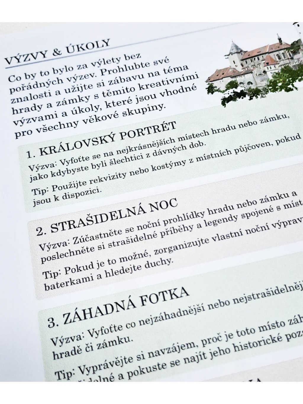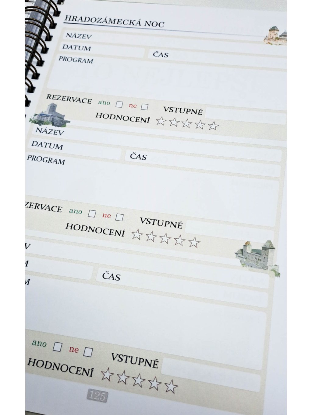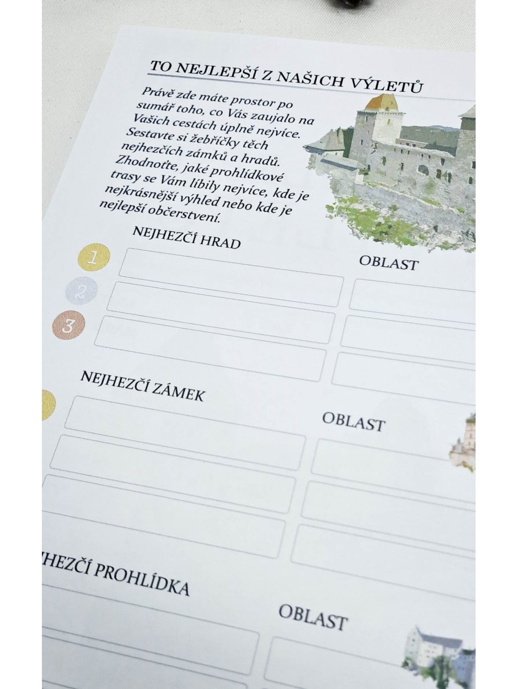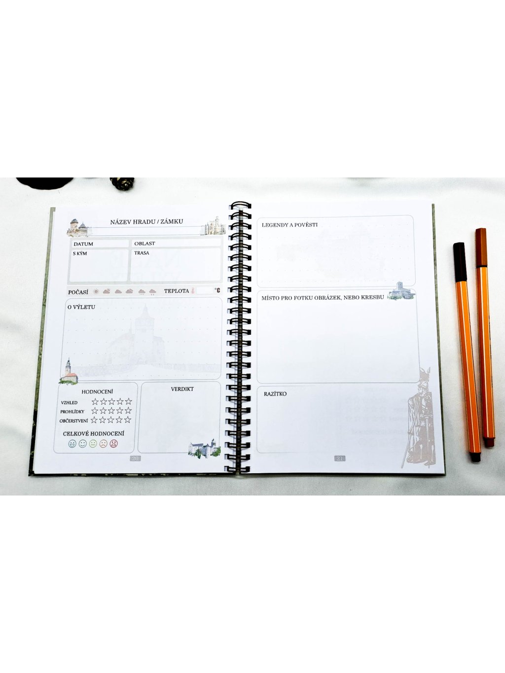 - Deník (pro 50 výletů na hrady nebo zámky)
