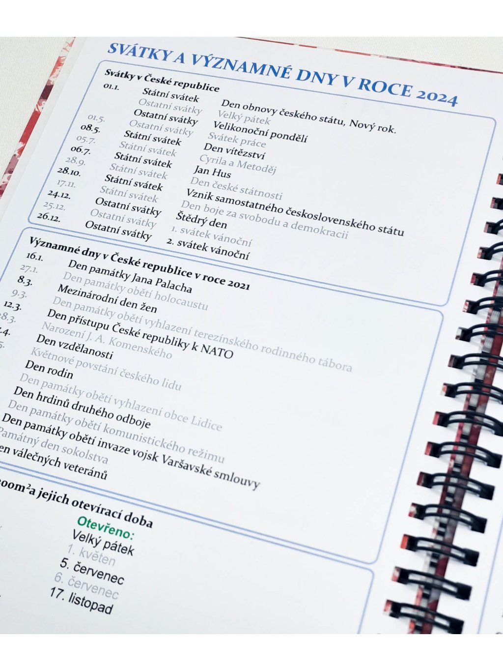 - Důležitá data (státní svátky, významné dny, otevírací doby obchodů)