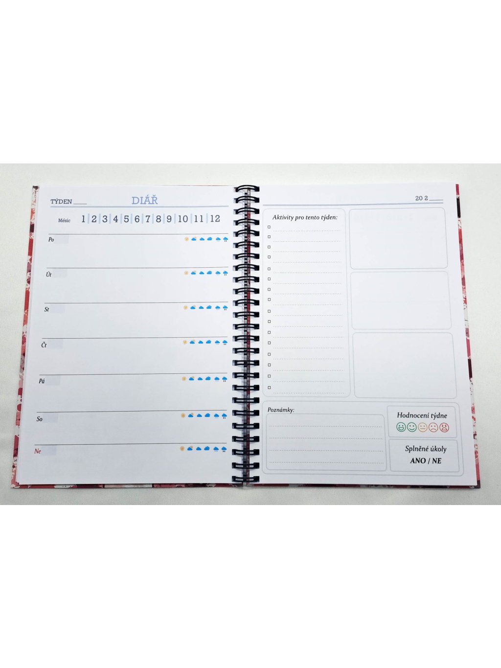 - TÝDENNÍ KALENDÁŘ - dvoustrana pro každý týden v roce (prostor pro poznámky, aktivity, úkoly,...)