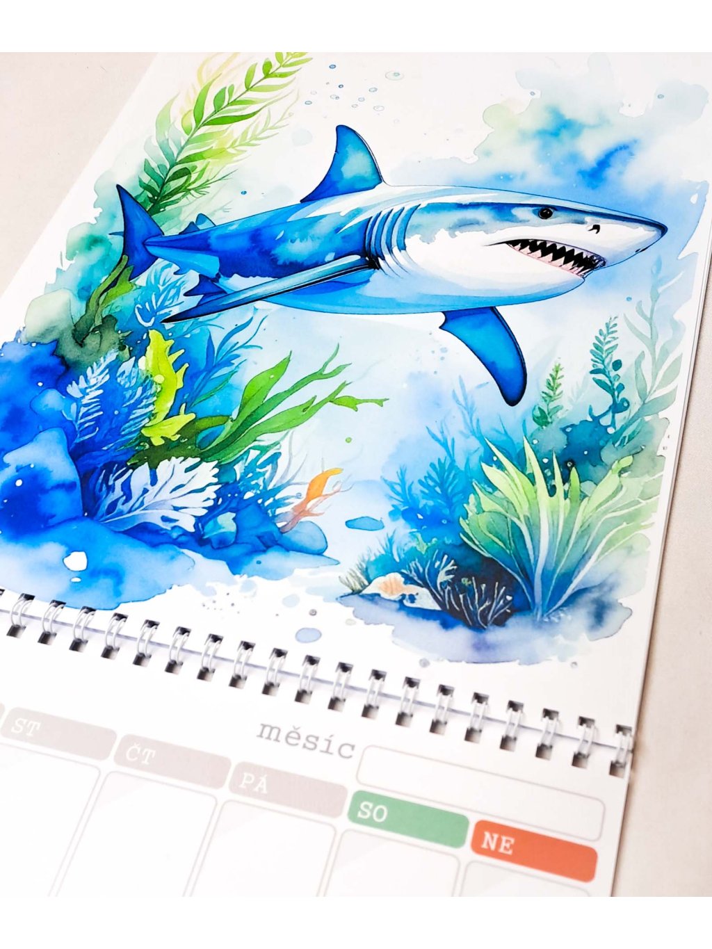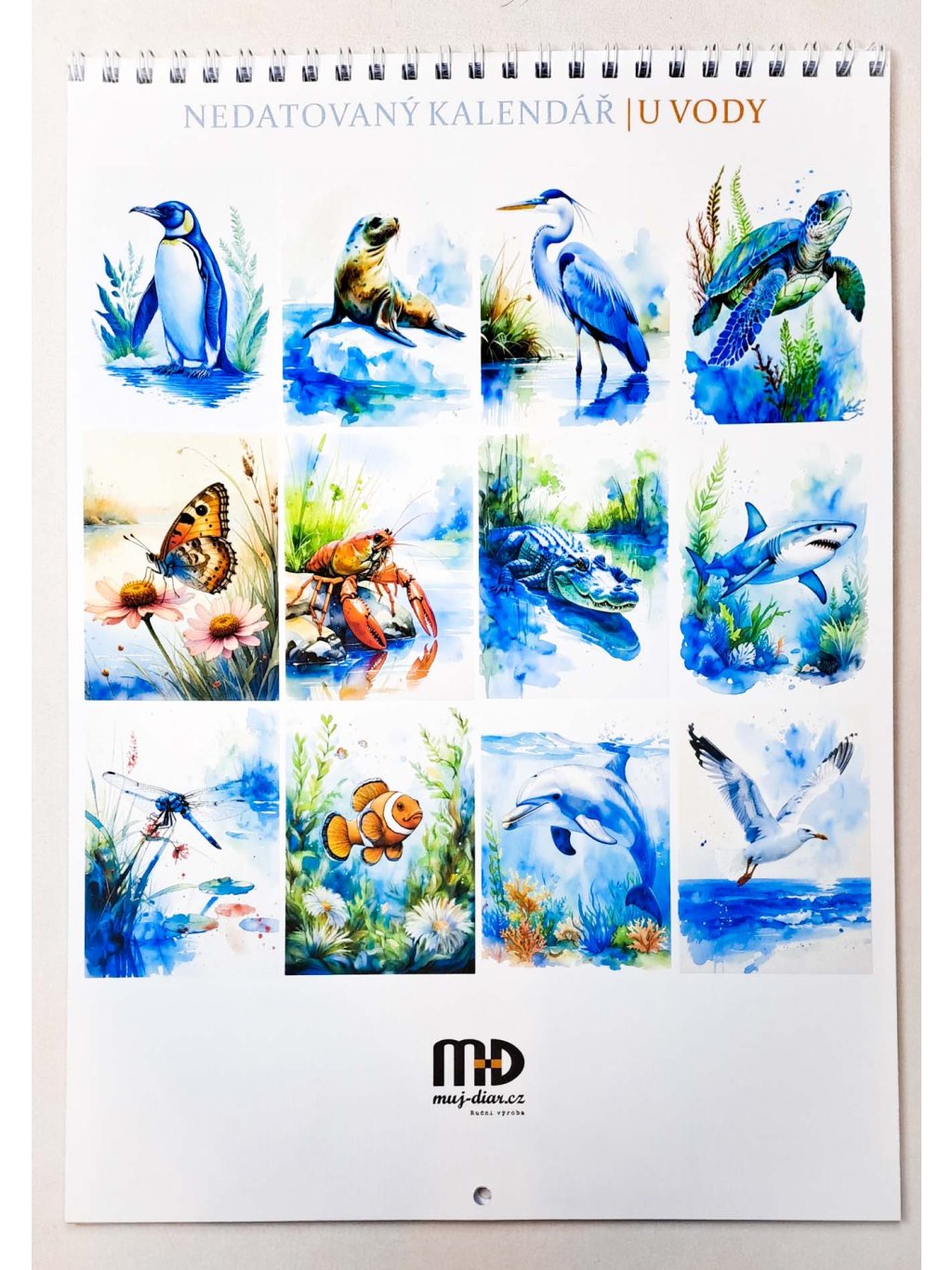 Nedatovaný plánovací kalendář A4 (na výšku, na zeď, AQUAREL COLLECTION) - U vody