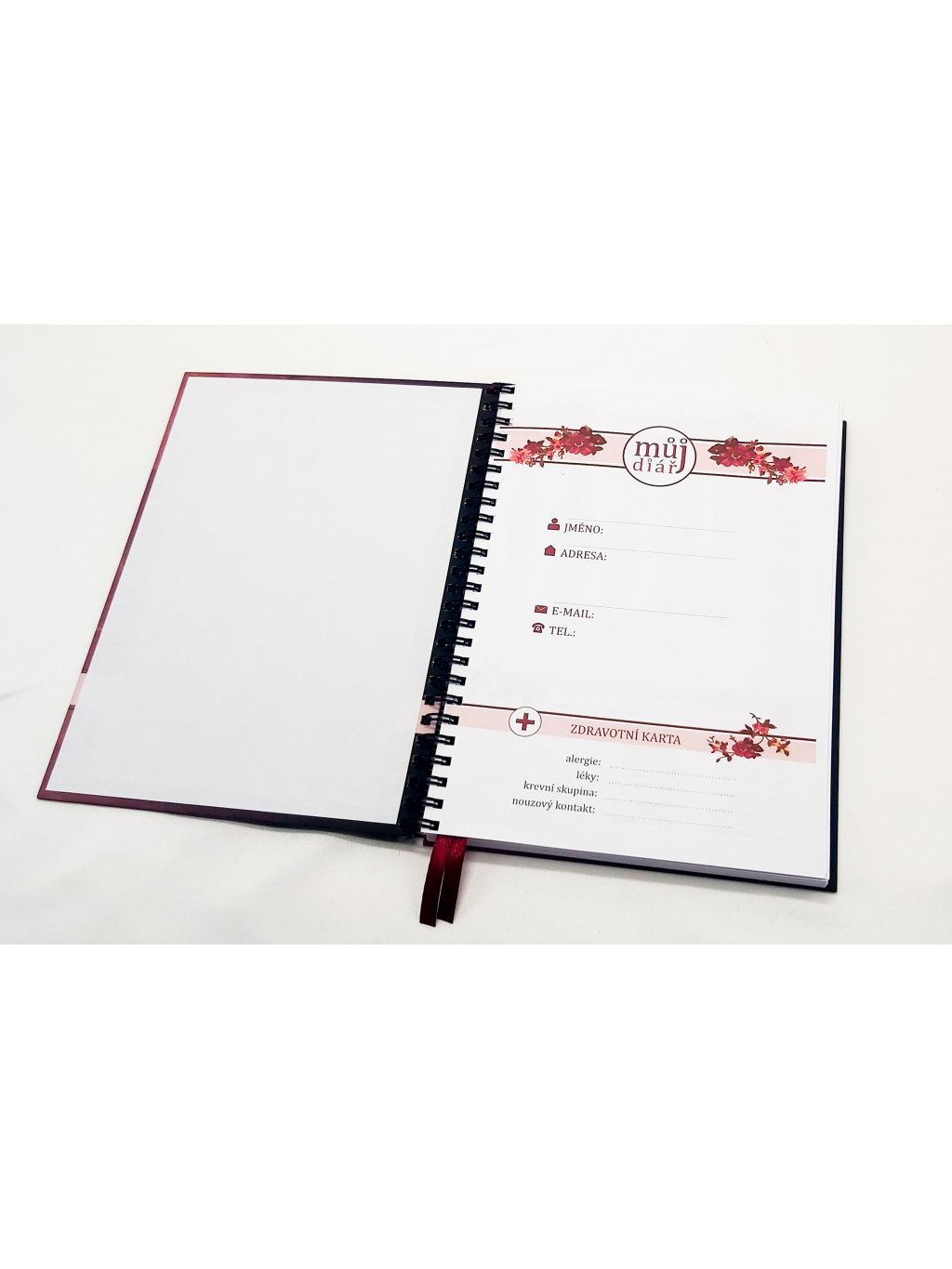 Osobní diář - nedatovaný, A5, ucelené měsíce, červené květy