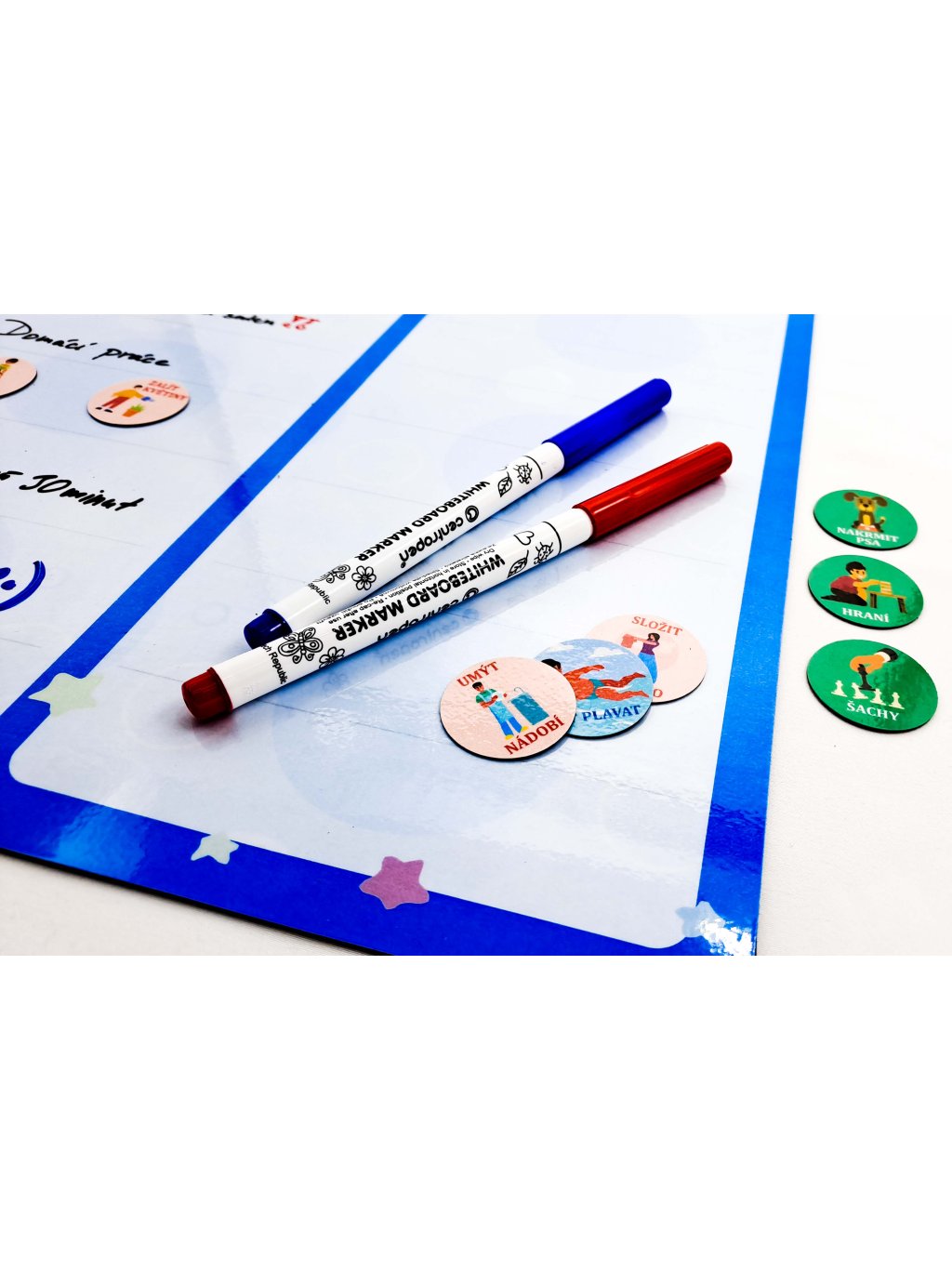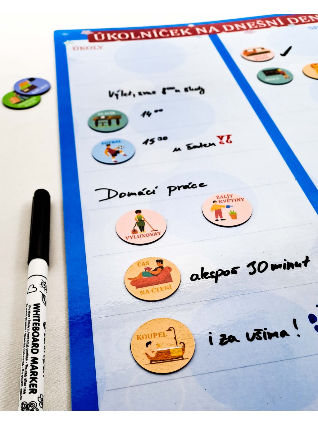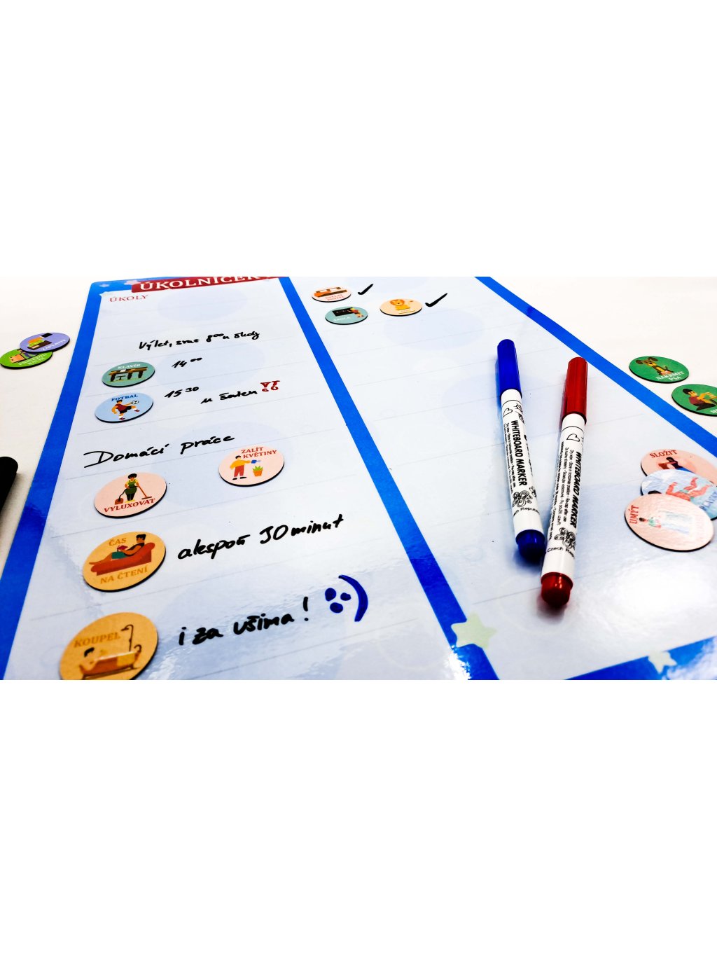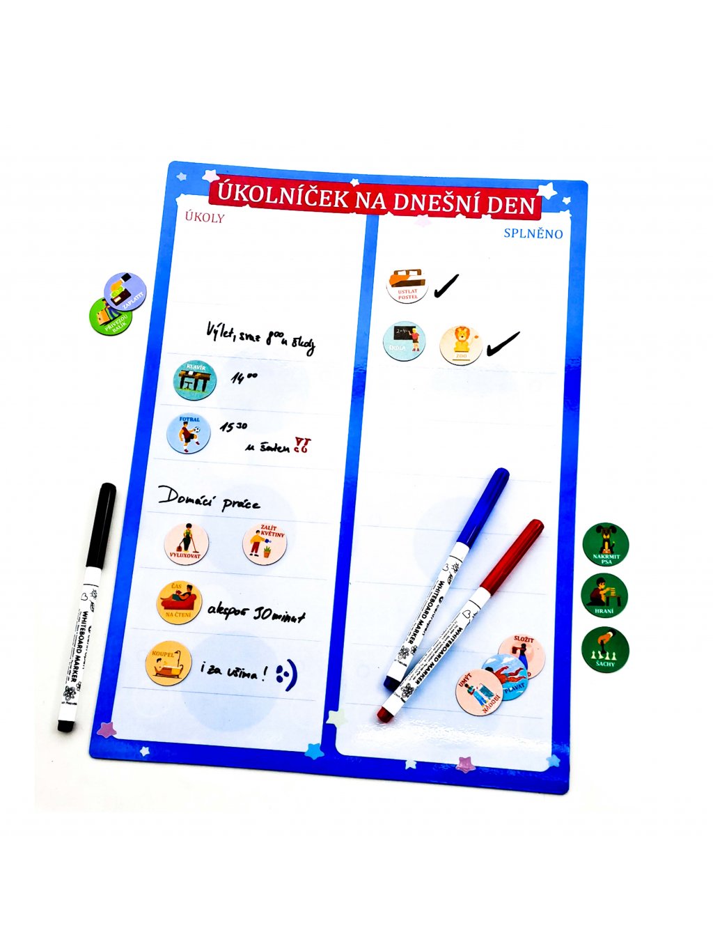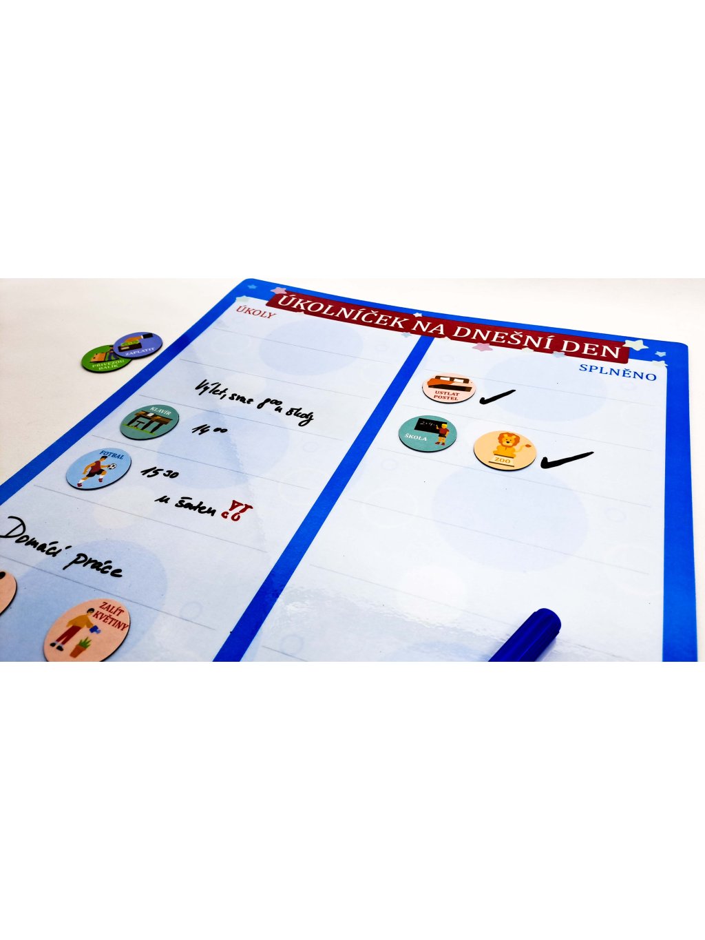 Magnetický Úkolníček na dnešní den - přepisovatelný, A3 (modrý) + 3x fix, 5x magnetek